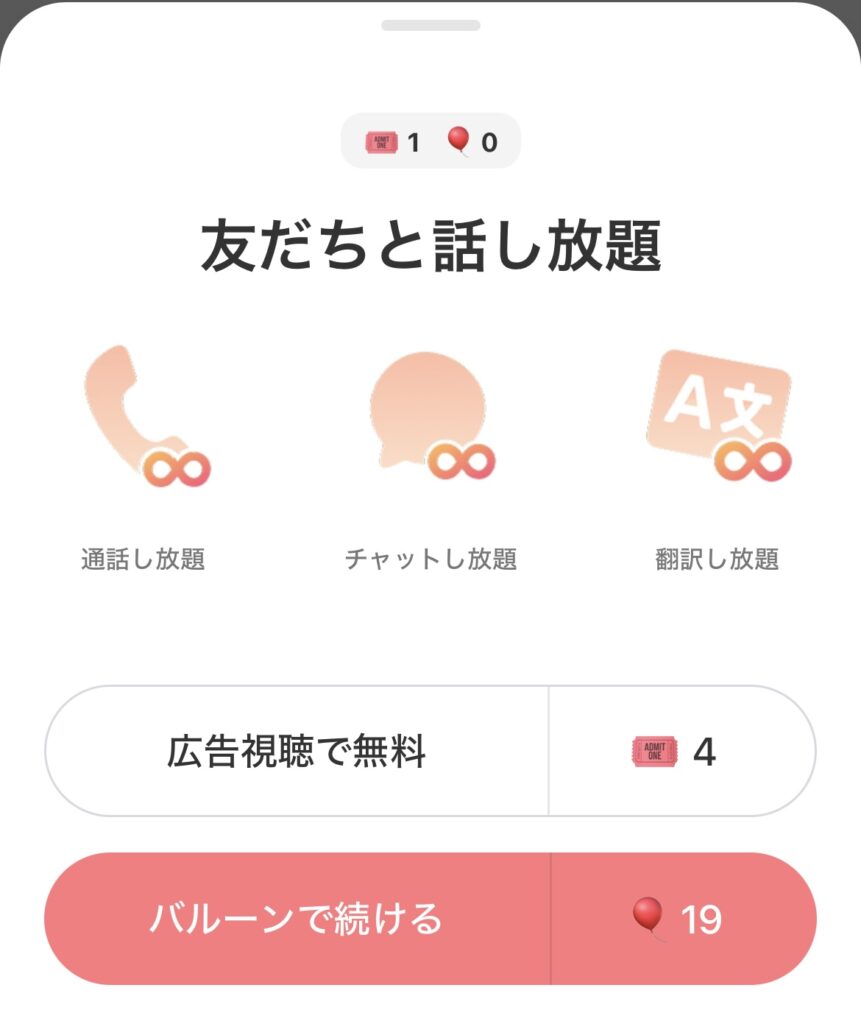 チャット機能は通話機能に比べると、ややマッチングが難しい部分もありますが、バルーンやチケットを利用することで、気になる相手とチャットを続けることができます。