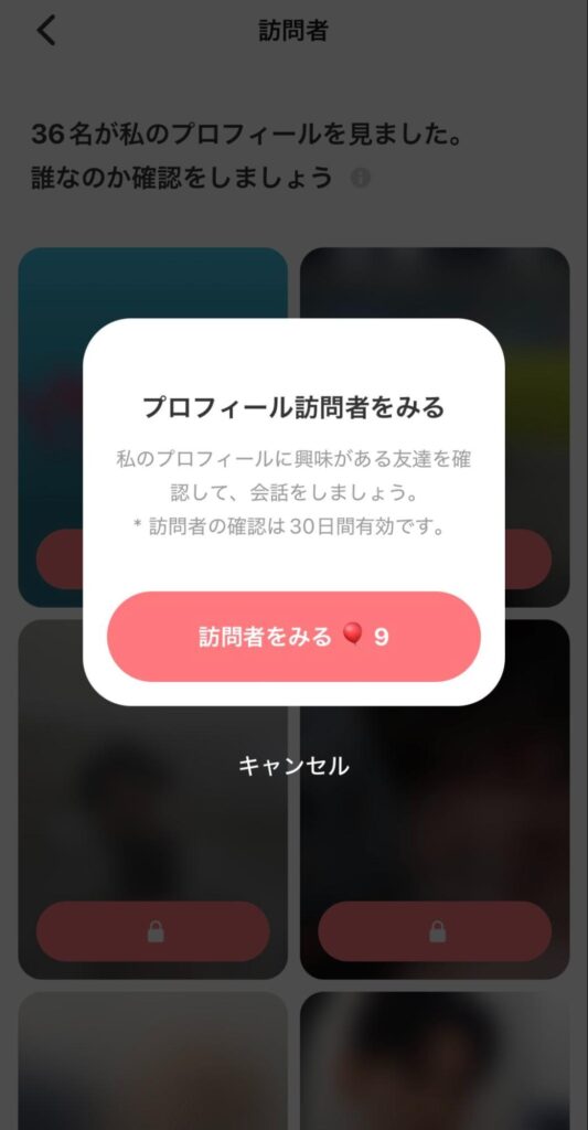 バルーンを所持していない状態では、モザイクがかけられ相手のプロフィールが見えない状態ですが、バルーンを使うと誰が見に来てくれたのかがわかる仕組みになっています。