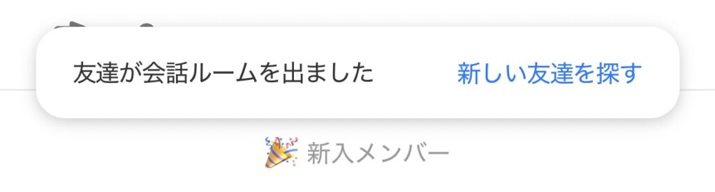 筆者が何度か利用して感じましたが、チャットルームでは頻繁に相手から退出されるので、気の合う相手を探すのは通話機能に比べ少し難しいかもしれません。