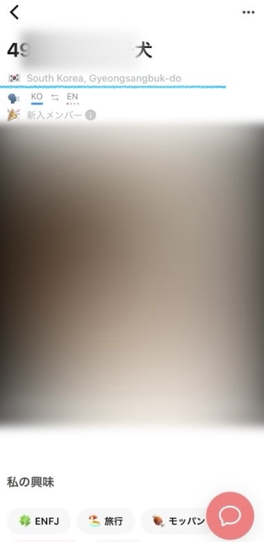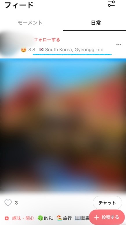 この方の場合は、国籍が韓国で、位置情報も韓国になっています。