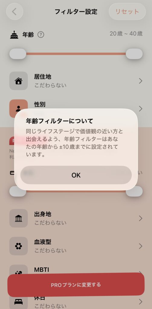 年齢フィルターを設定すると、希望した年齢層に該当するユーザーだけが表示されます。