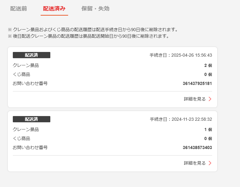 今回の記事では、自分自身の実際の利用経験をかなり具体的に交えて、タイクレでのアシスト機能について解説していきますね!(↓こんな感じで、実際にタイクレを使って景品を配送してもらっています!)