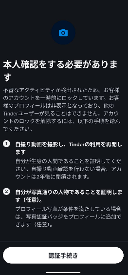 「不審なアクティビティの検出」でTinderでアカウントロックになった!