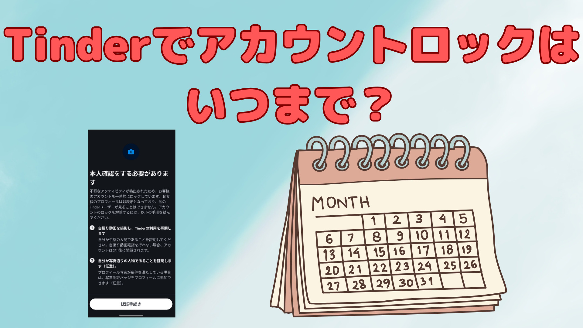 Tinderでアカウントロックはいつまで?写真認証・自撮り動画認証の流れも解説。